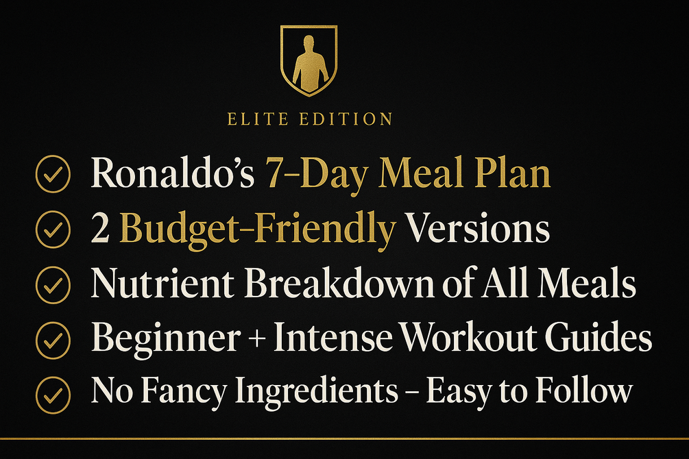 Cristiano Ronaldo’s wallpapers & Wall Art , Mindset EBook, Complete 7-Day Workout Guide + 7-Day, 6-Meal Daily Diet with Full Nutrient Breakdown — and also Includes 2 Affordable Versions Using Budget Foods. Perfect for Fitness, Fat Loss, or Muscle Gain!